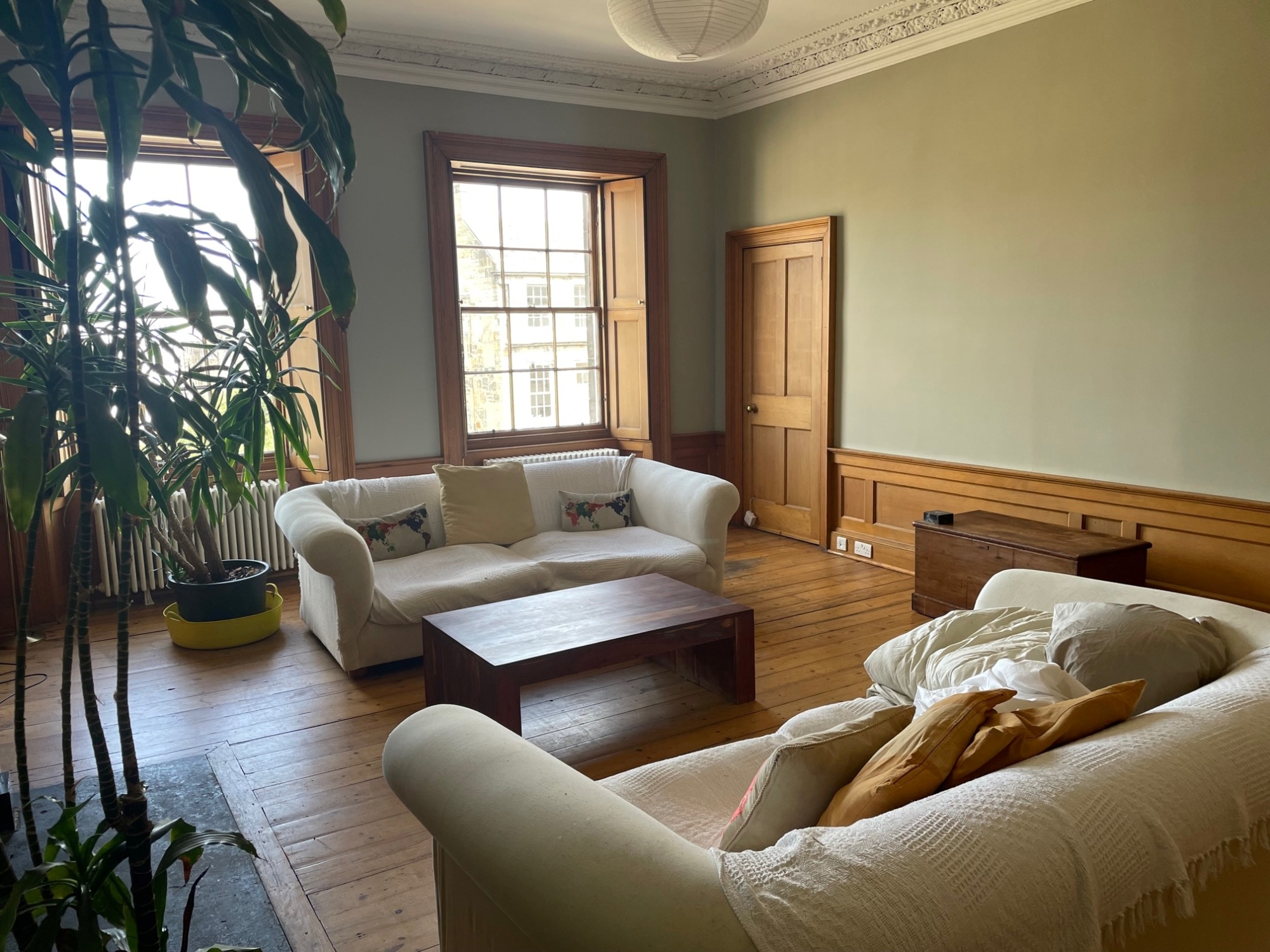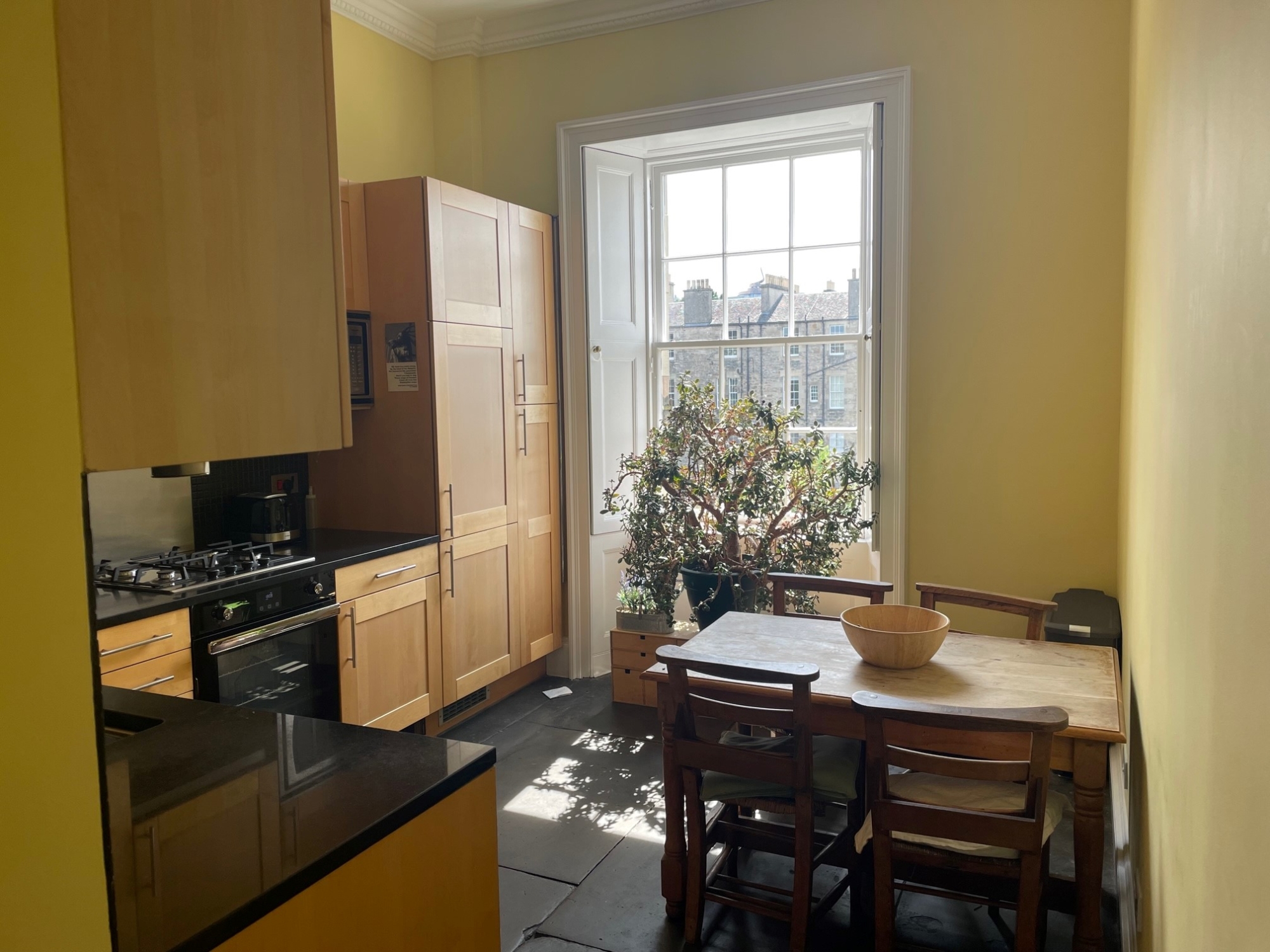 Accommodation comprises: Bright spacious hallway with all rooms off through to stylish fully-fitted breakfasting kitchen with all mod cons; with views across Edinburgh's New Town. Large double bedroom 1 with front facing city views. Storage. Bathroom 1 with 3-piece suite.  Double bedroom 2 with free standing modern furnishings.  Double bedroom 3 with modular desk and captains bed.  Bathroom 2 with 3-piece suite and overhead shower. Master double bedroom 4 with free standing furniture and city views. Extensive dual aspect bright and spacious living room. Ladder access to large loft for storage. Finished and furnished to a high standard throughout. Call to view. Non-HMO property. Avail to rent 08.06.2026.